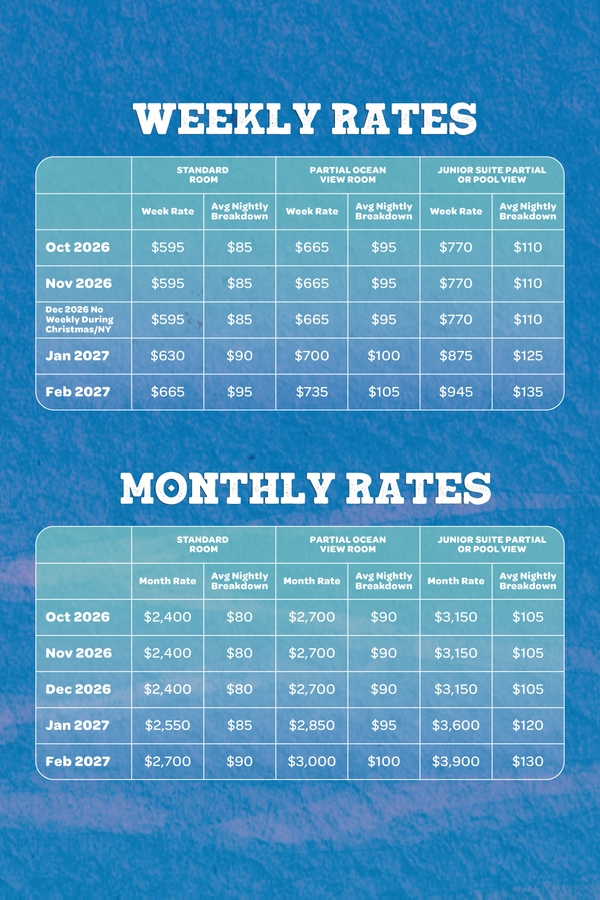 Escape the cold and save big this winter with exclusive weekly and monthly rates starting at just $75/night!