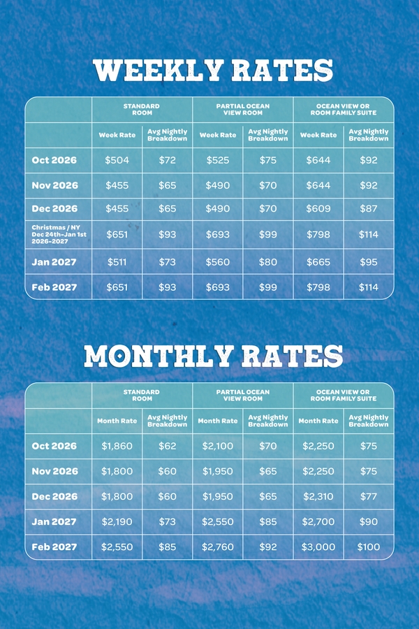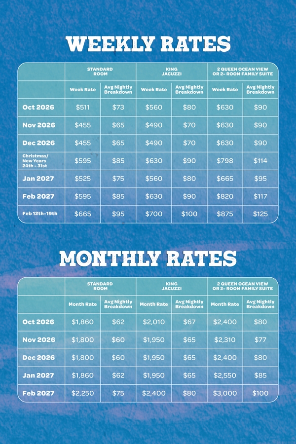 Enjoy South Padre Island’s sunshine and sea breeze while staying at one of our top beachfront hotels or beach condos. Whether you're booking for a week or planning a longer winter retreat, our 2026–2027 Winter Rates package includes unbeatable perks designed to make your stay comfortable, affordable, and delicious.